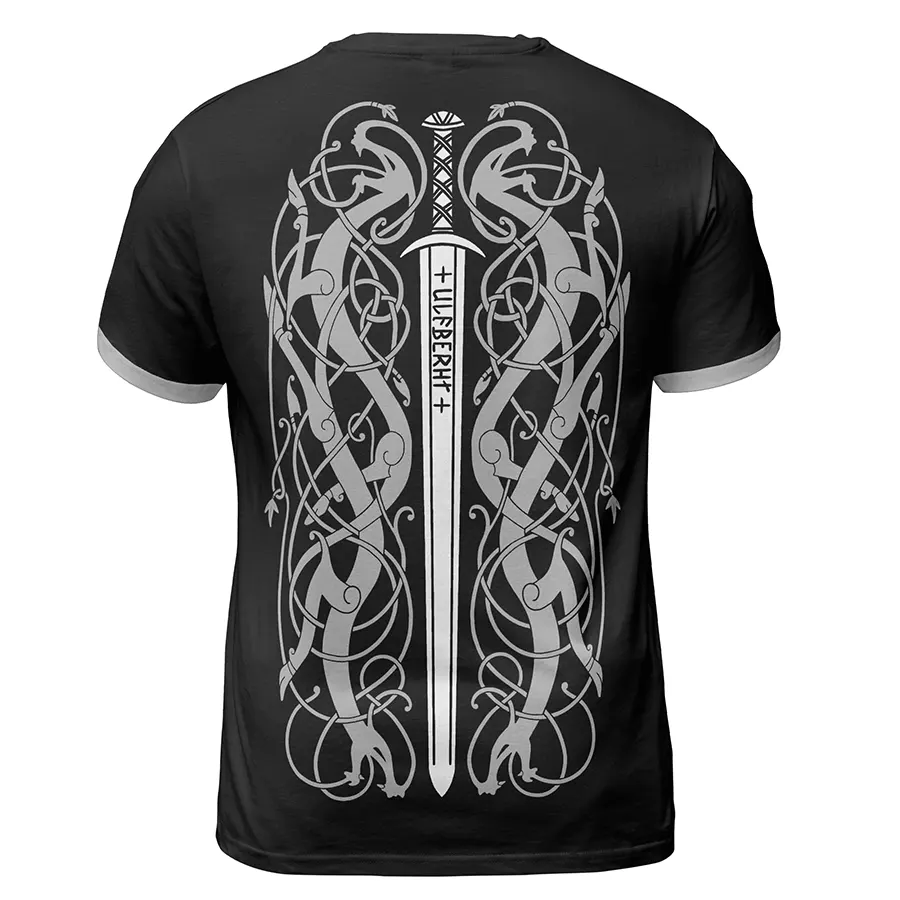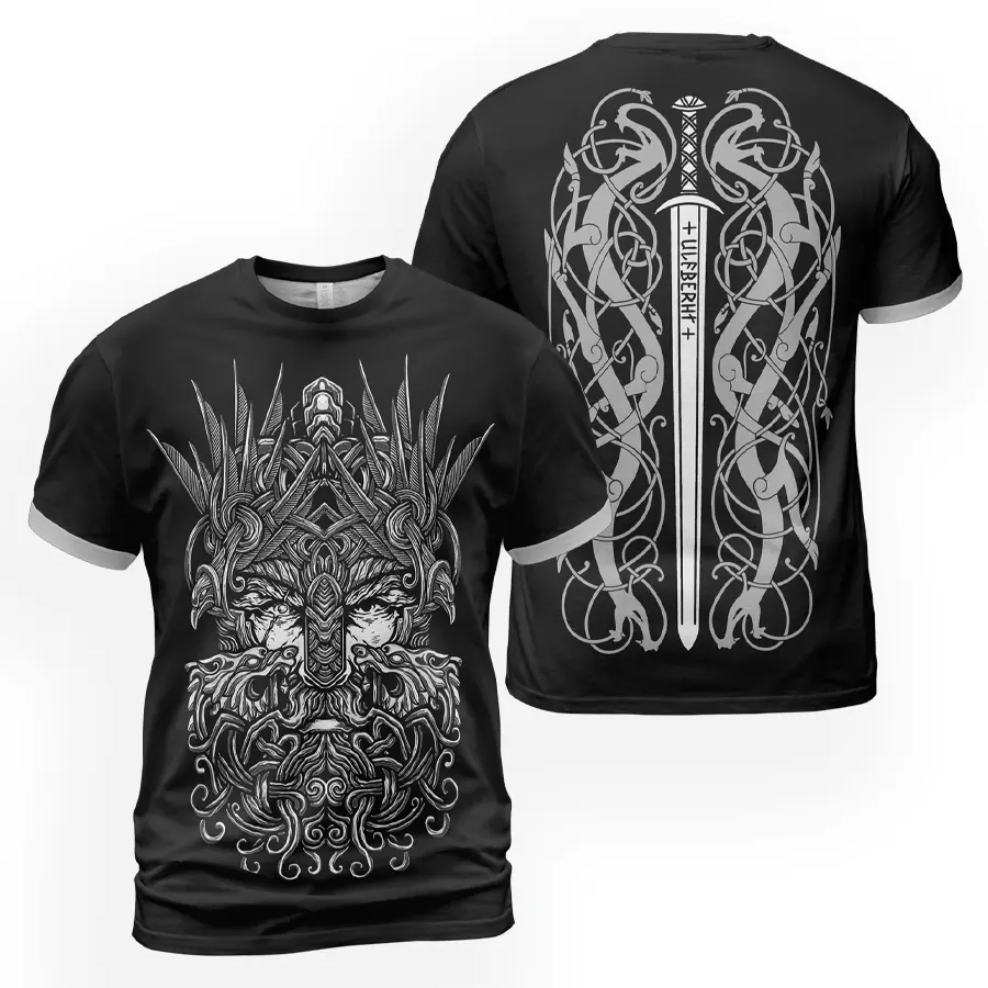 Epic Viking T Shirt – Odin With Raven And Wolf and Ulfberht Sword