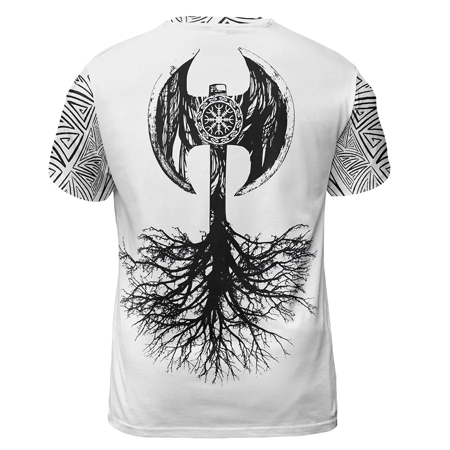 Epic Viking T Shirt – Skull Viking Beards with Norse Axe