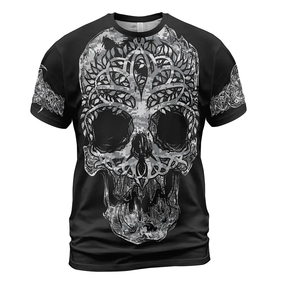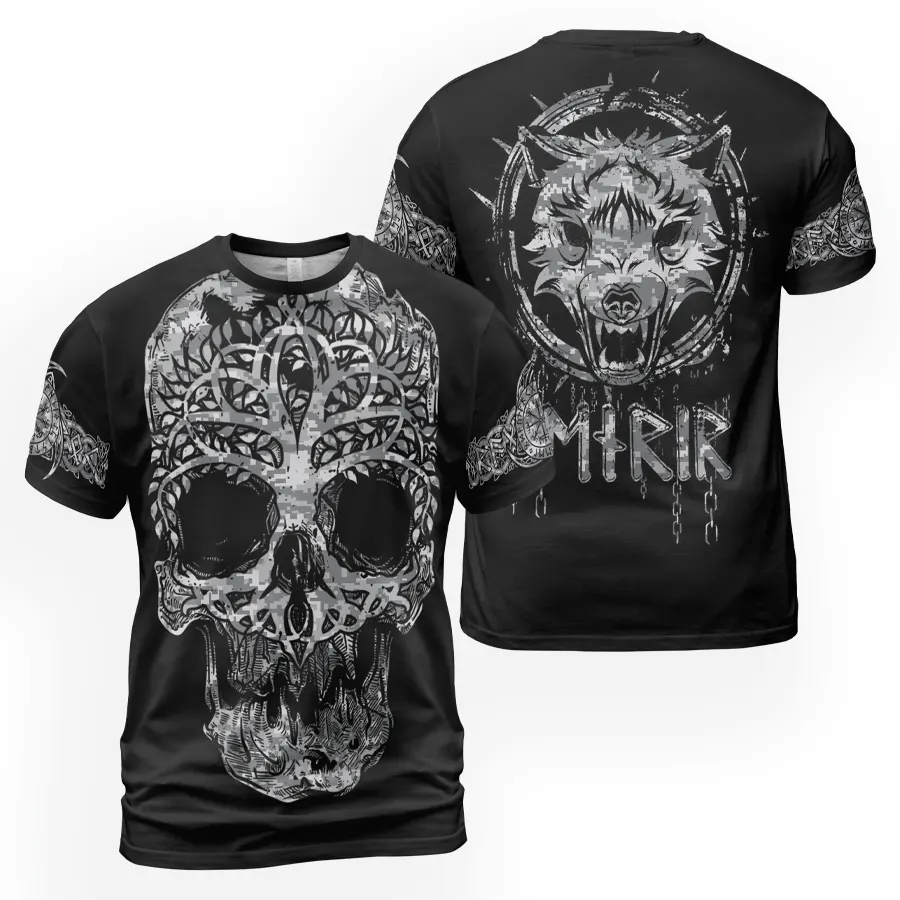 Mythic Viking T Shirt – Skull Celtic Tree of Life with Fenrir Symbol