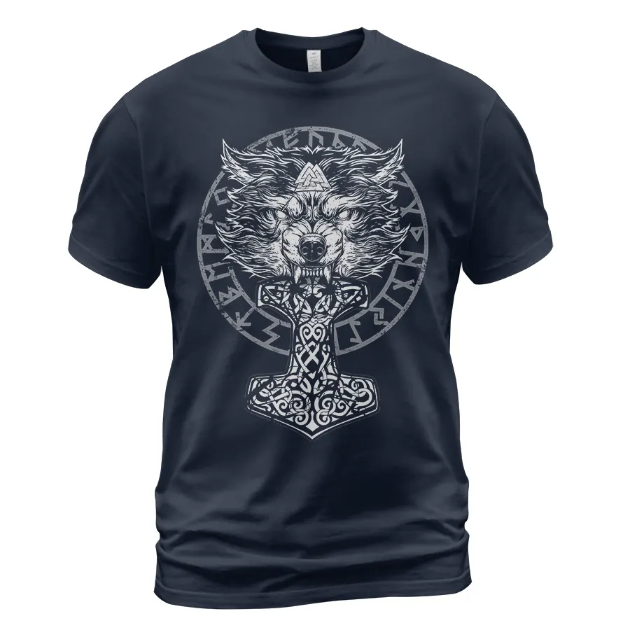 Norse T Shirts Rune Mjolnir Norse Wolf Art Ironclad Resolve