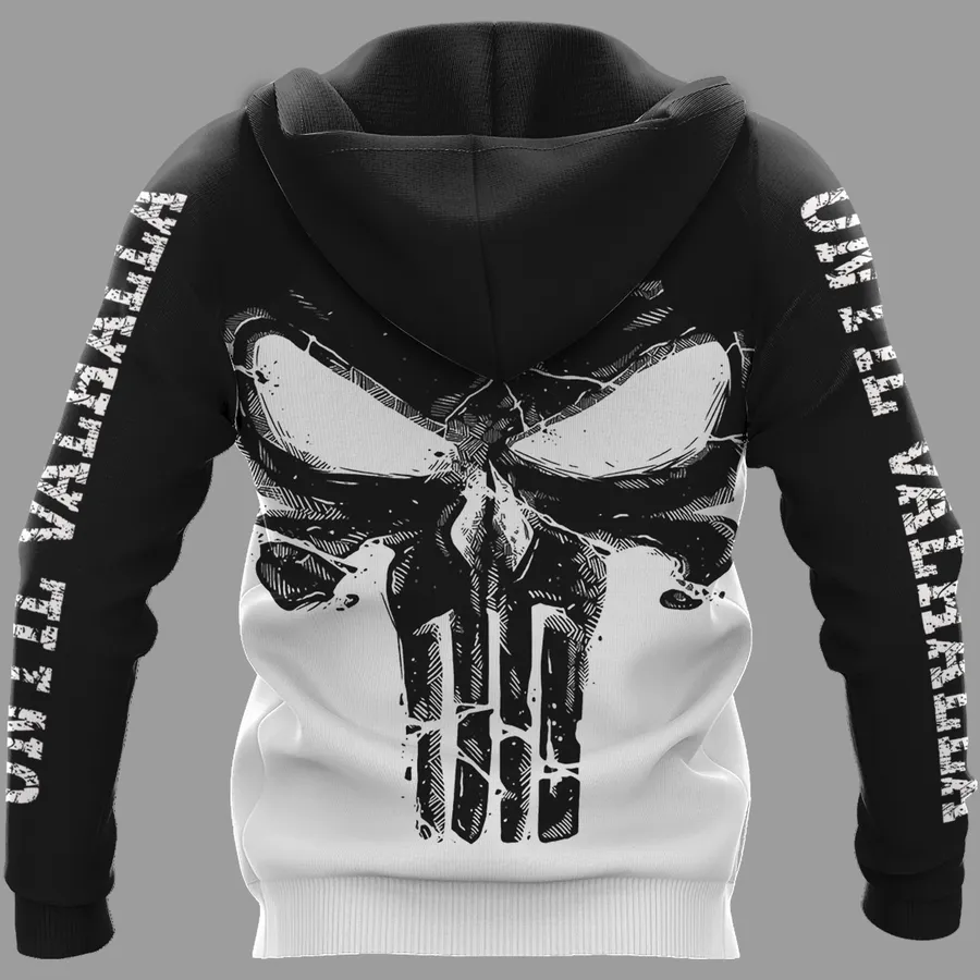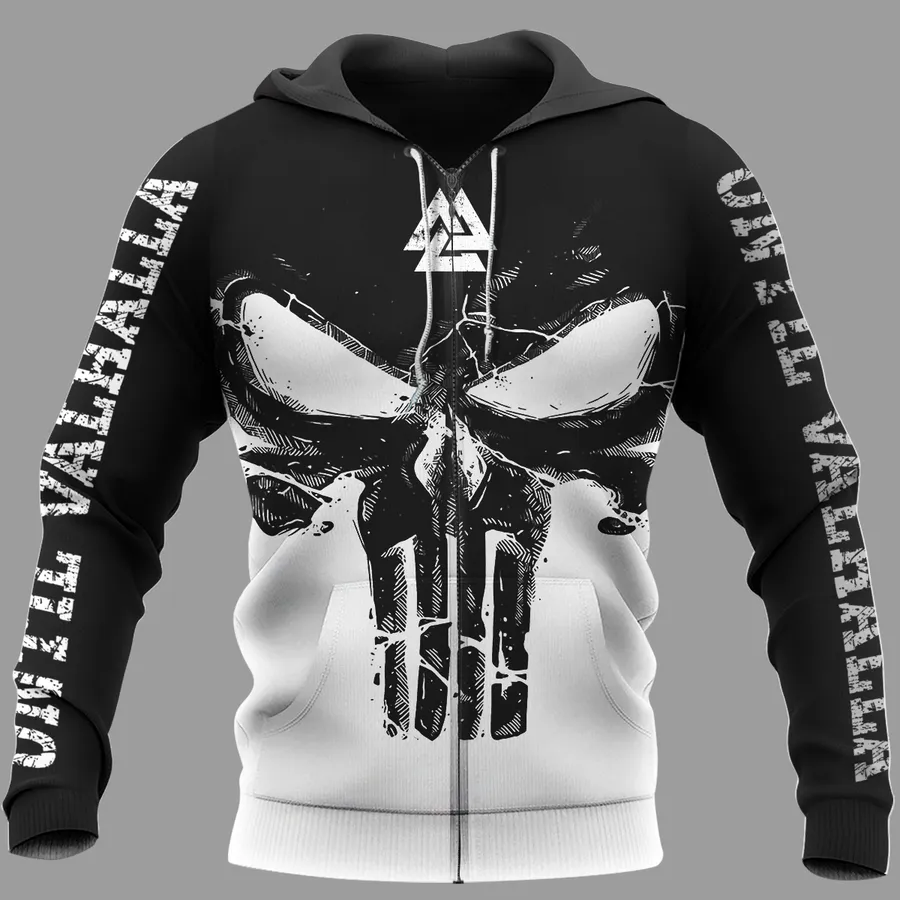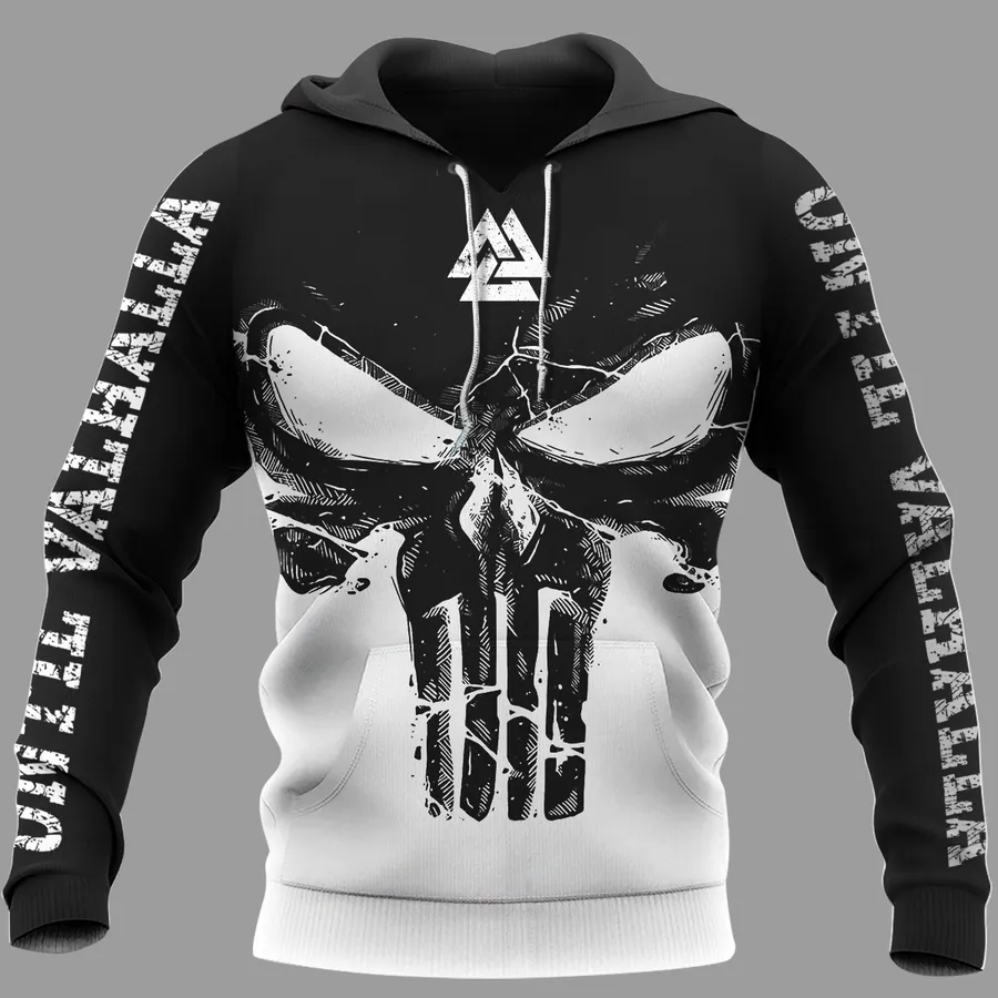 Until Valhalla Hoodie with skull design and Valknut symbol — a fearless Skull Hoodie inspired by Viking legacy.