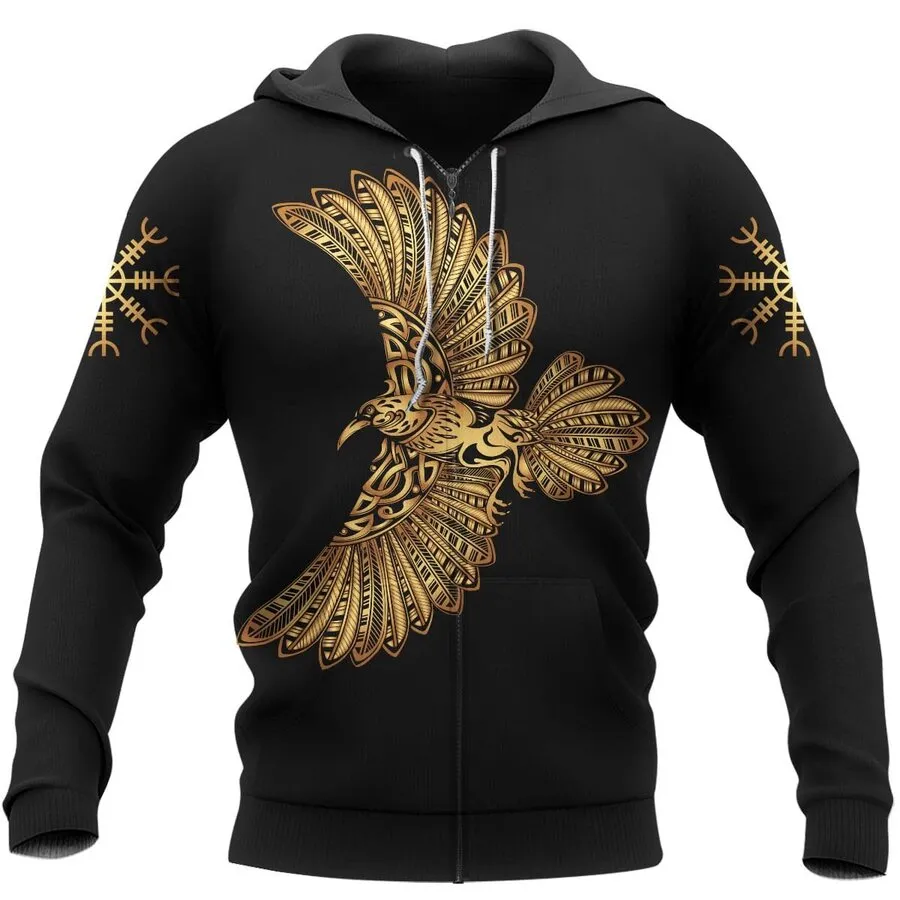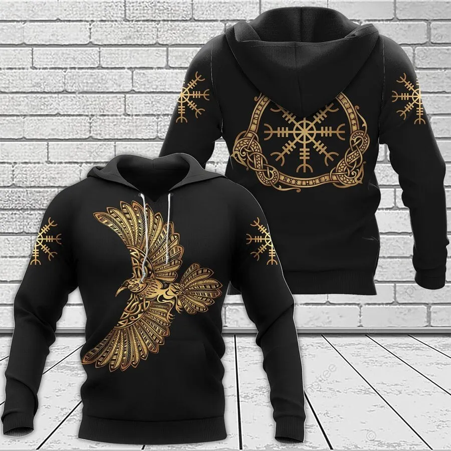 Embrace sacred protection in a Viking hoodie featuring the Helm of Awe and Norse raven design—symbols of power, courage, and legendary Norse legacy.