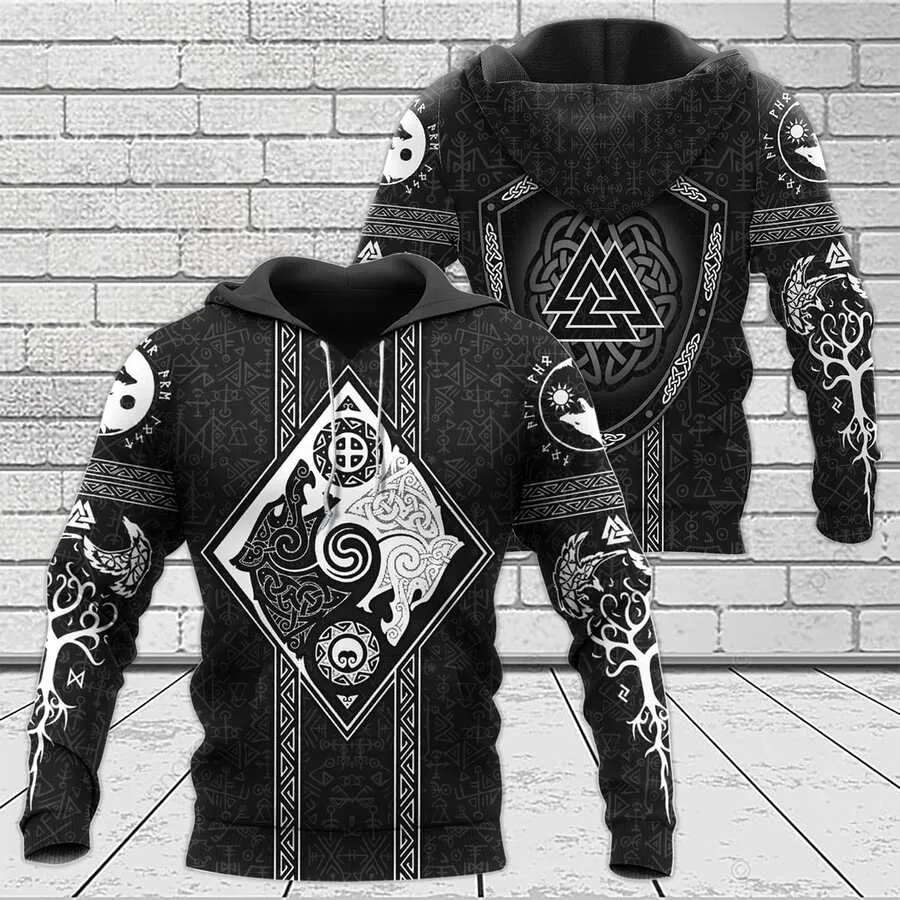 Unleash primal legend with Viking hoodies featuring the Celtic Norse Viking wolf rune—melding heritage, strength, and the untamed spirit of Norse mythology.