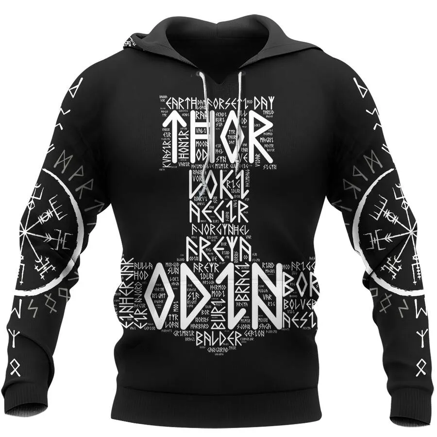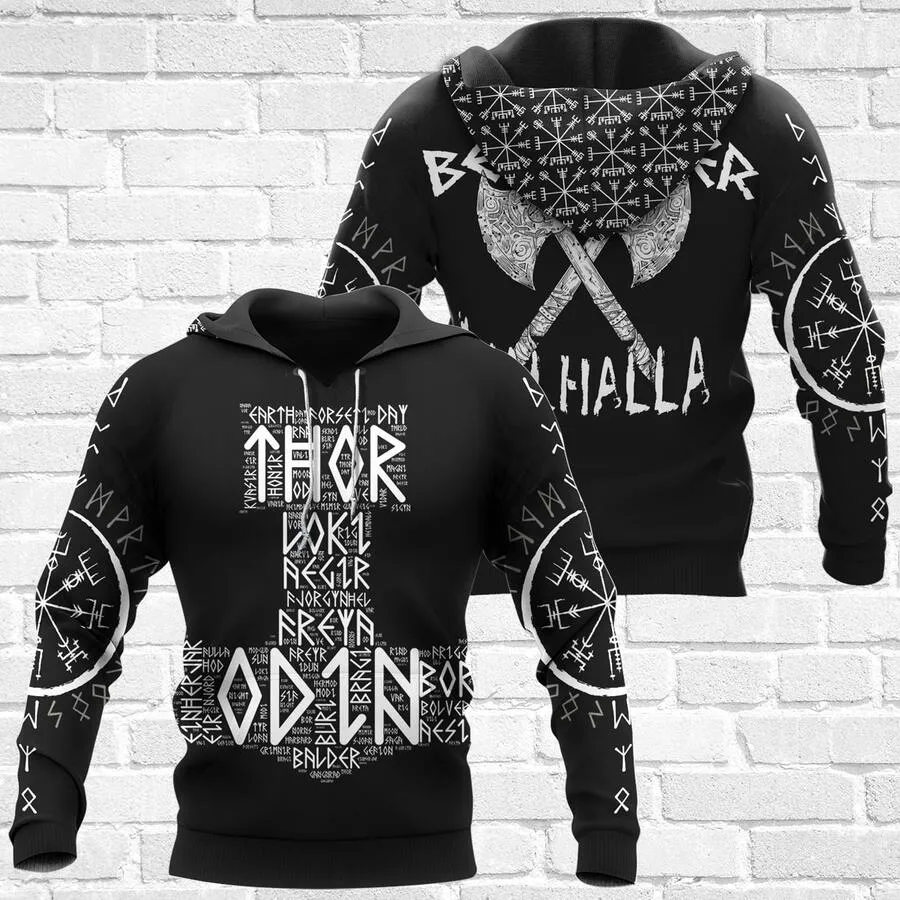 Channel the power of the gods in Viking hoodies featuring the Hammer of Thor, Odin, and the promise of Valhalla—a true legacy of Norse strength and honor.