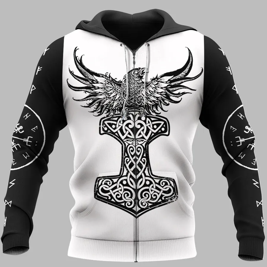 Viking Hoodies – Raven Viking – Hammer of Thor – Yggdrasil Art Legend