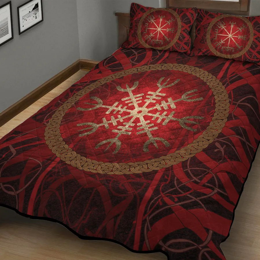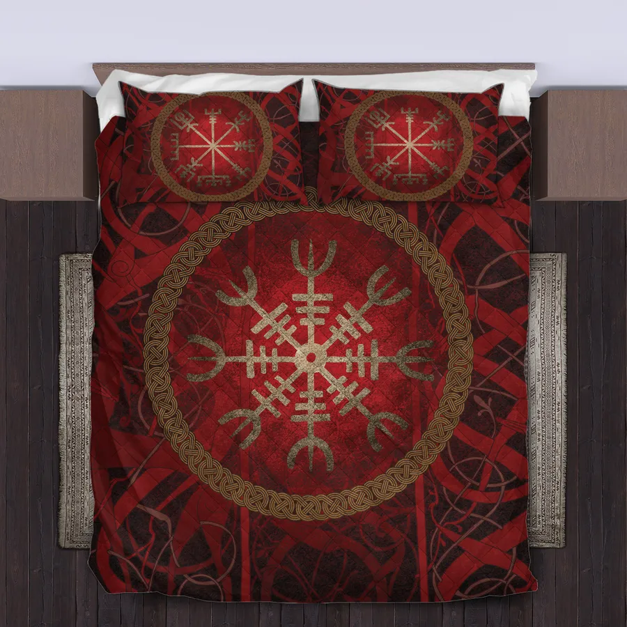 Rest under mystic protection with a Viking quilt bedding set featuring the Aegishjalmur Helm of Awe—invoking courage, defense, and legendary Norse power.