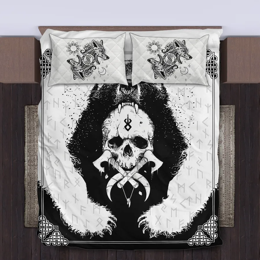 Viking Quilt Bedding Set – Bear Skull Berserker Art Savage Legacy