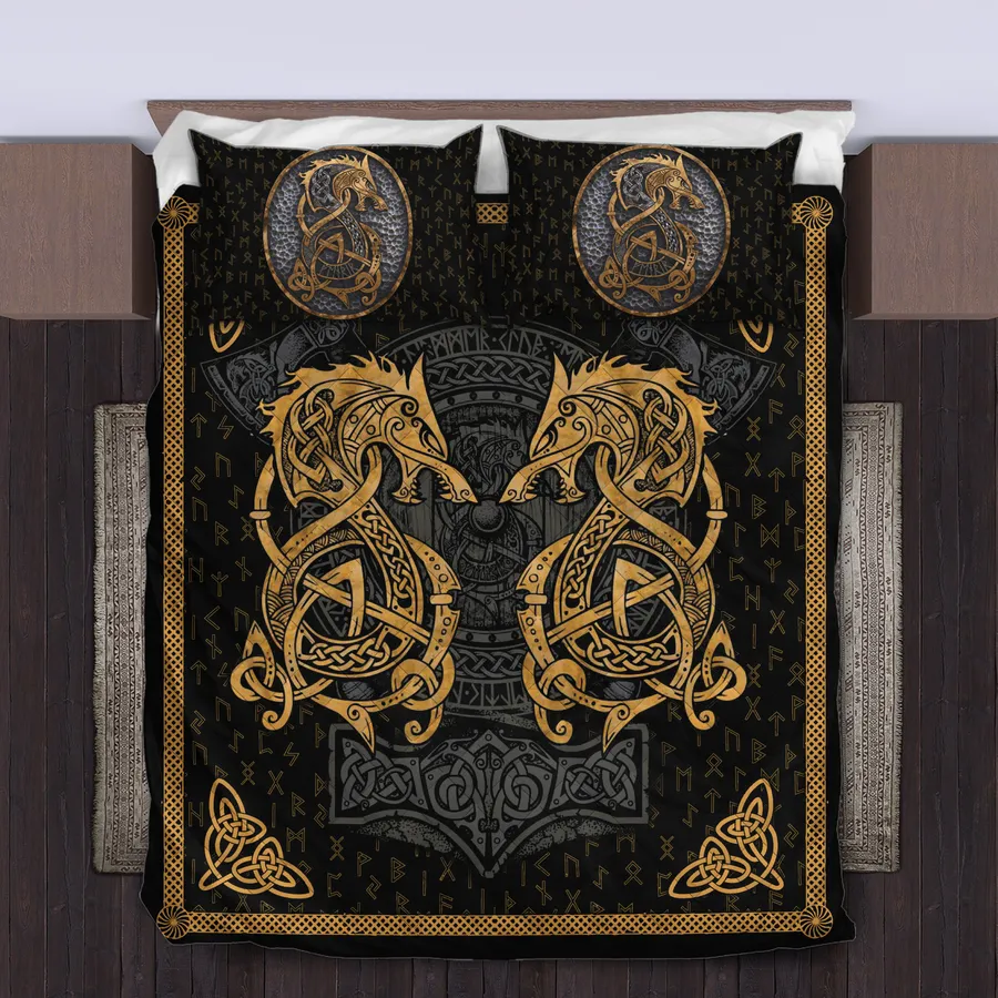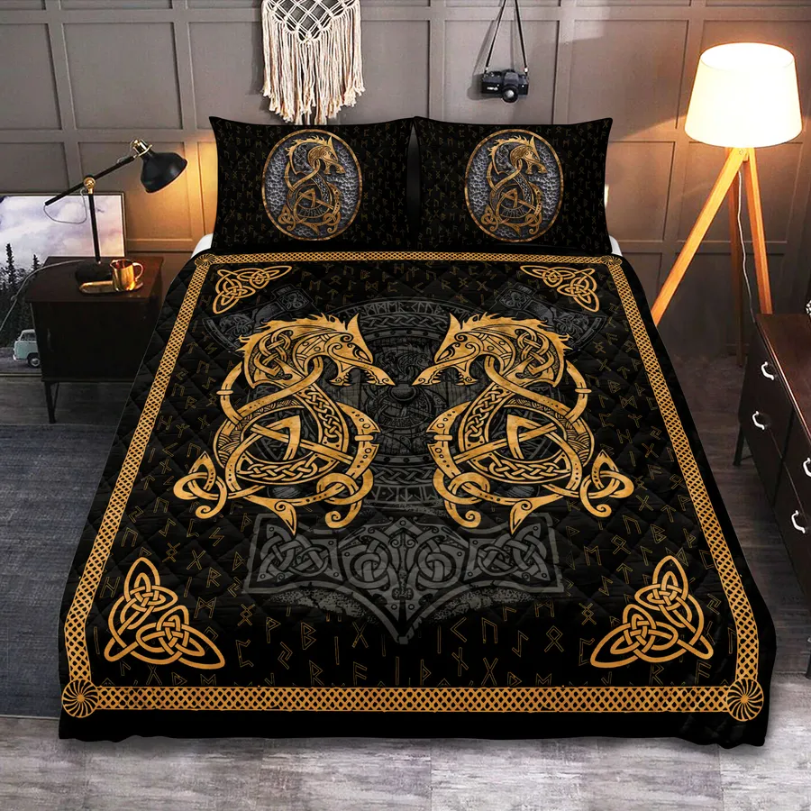 Embrace primal heritage with a Viking quilt bedding set featuring Celtic Norse wolf art—celebrating untamed spirit, strength, and timeless Viking tradition.