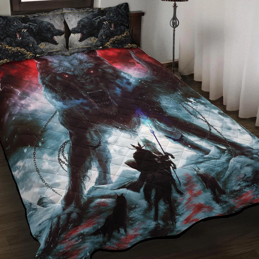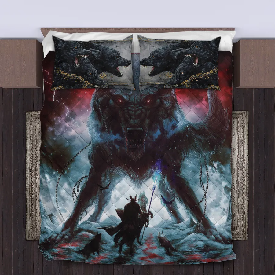 Unleash epic power in your bedroom with a Viking quilt bedding set featuring Fenrir art of Ragnarok—symbolizing wild legend, unstoppable force, and Norse destiny.