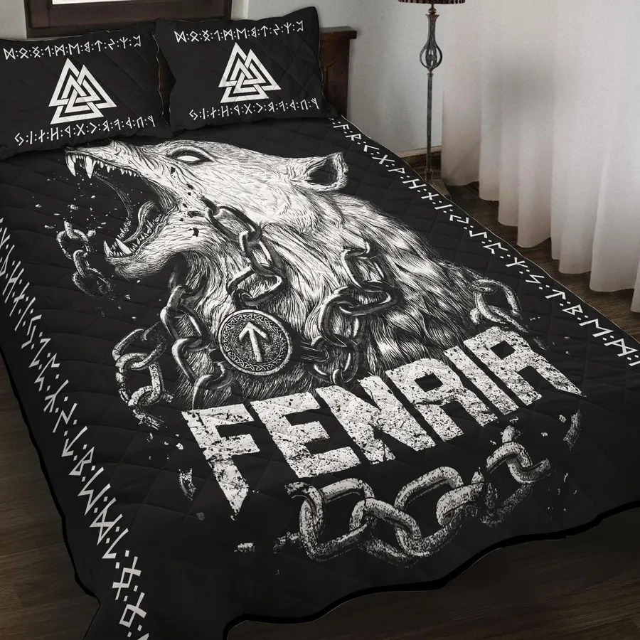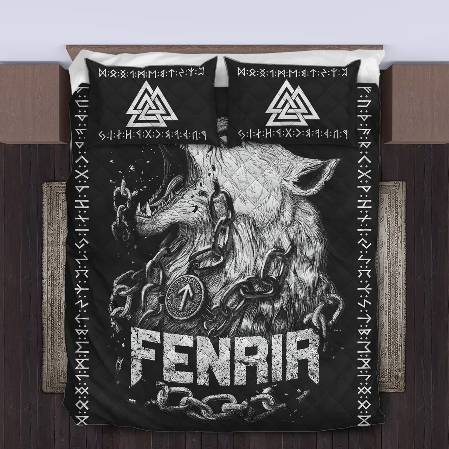 Unleash fierce legend in your bedroom with a Viking quilt bedding set adorned in powerful Fenrir drawing, celebrating the wild spirit and unstoppable might of Norse myth.