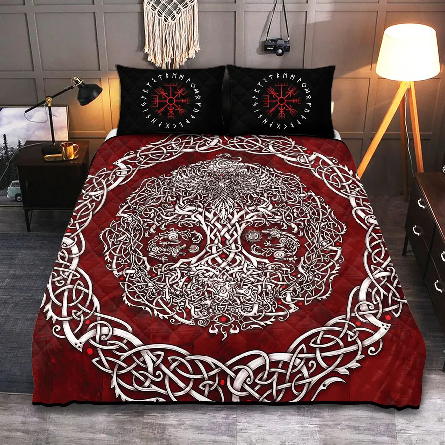 Bring strength and renewal to your bedroom with a Viking quilt bedding set featuring a striking metal Tree of Life, symbolizing resilience, unity, and ancient Norse heritage.