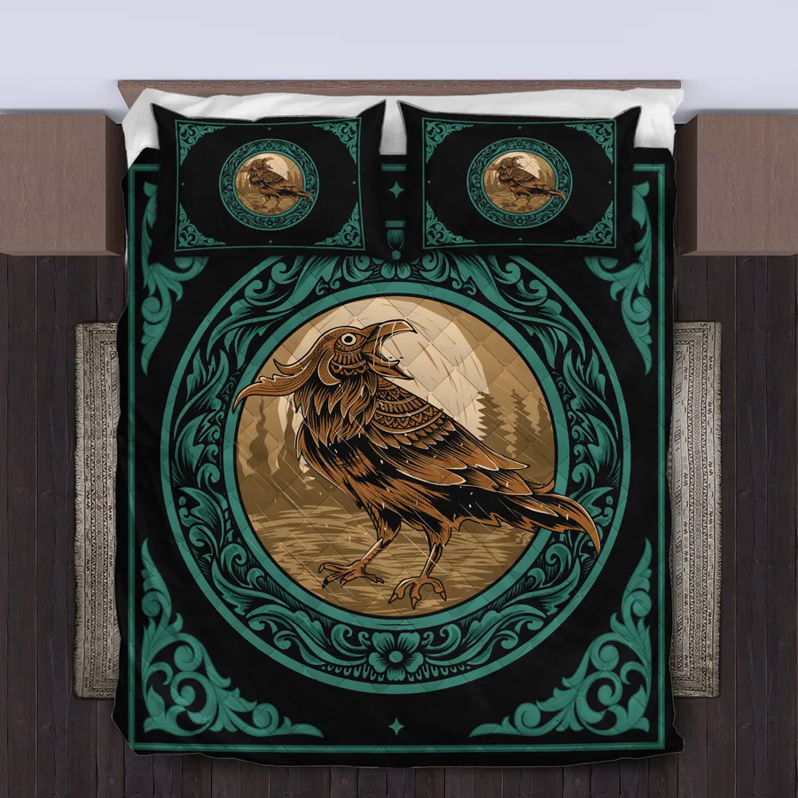 Viking Quilt Bedding Set – Norse Raven Design Legendary Spirit