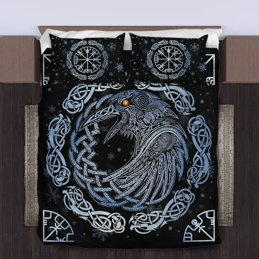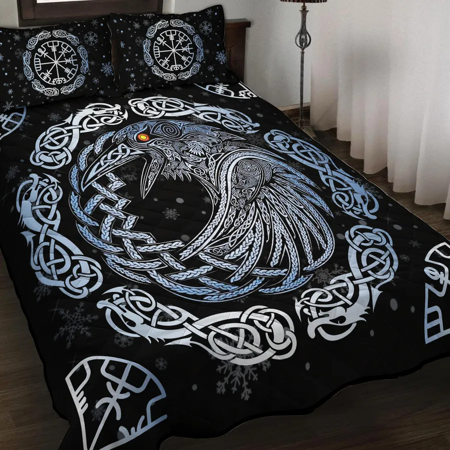 Viking Quilt Bedding Set – Norse Raven Design Legendary Wisdom