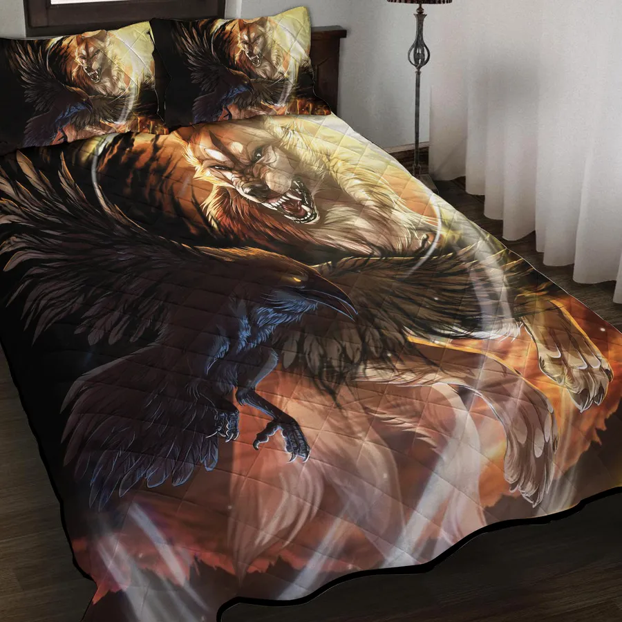 Unite legendary spirits in your sanctuary with a Viking quilt bedding set featuring Norse raven and wolf—celebrating wisdom, wildness, and the heart of Norse myth.