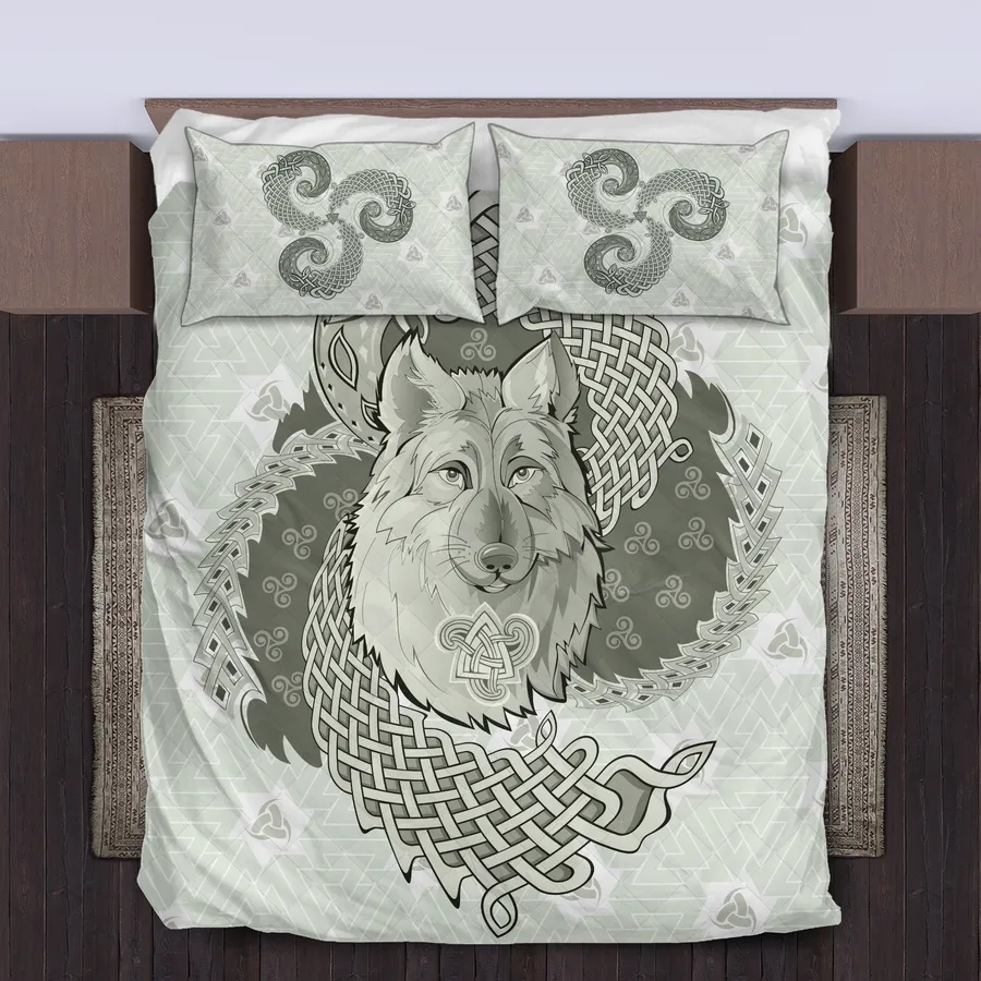 Awaken your wild side with a Viking quilt bedding set featuring Norse wolf art, channeling primal strength, loyalty, and the untamed legacy of Norse legends.