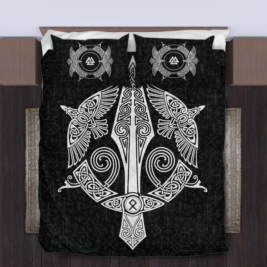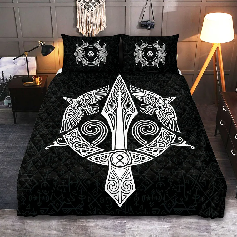 Ignite your nights with courage through a Viking quilt bedding set featuring the spear Viking, a symbol of warrior spirit, determination, and legendary Norse power.