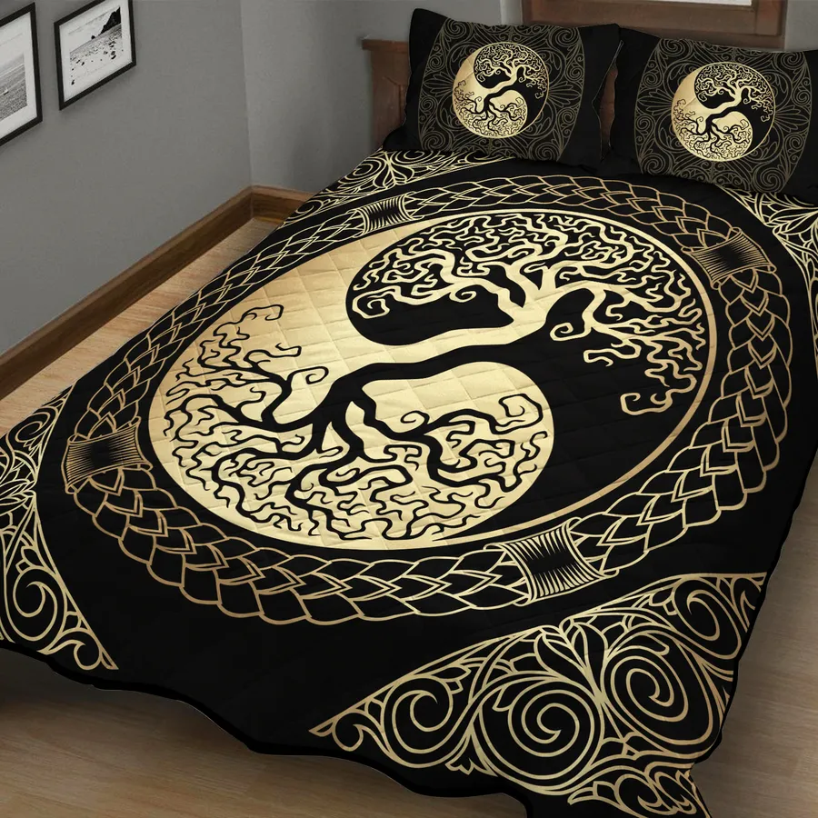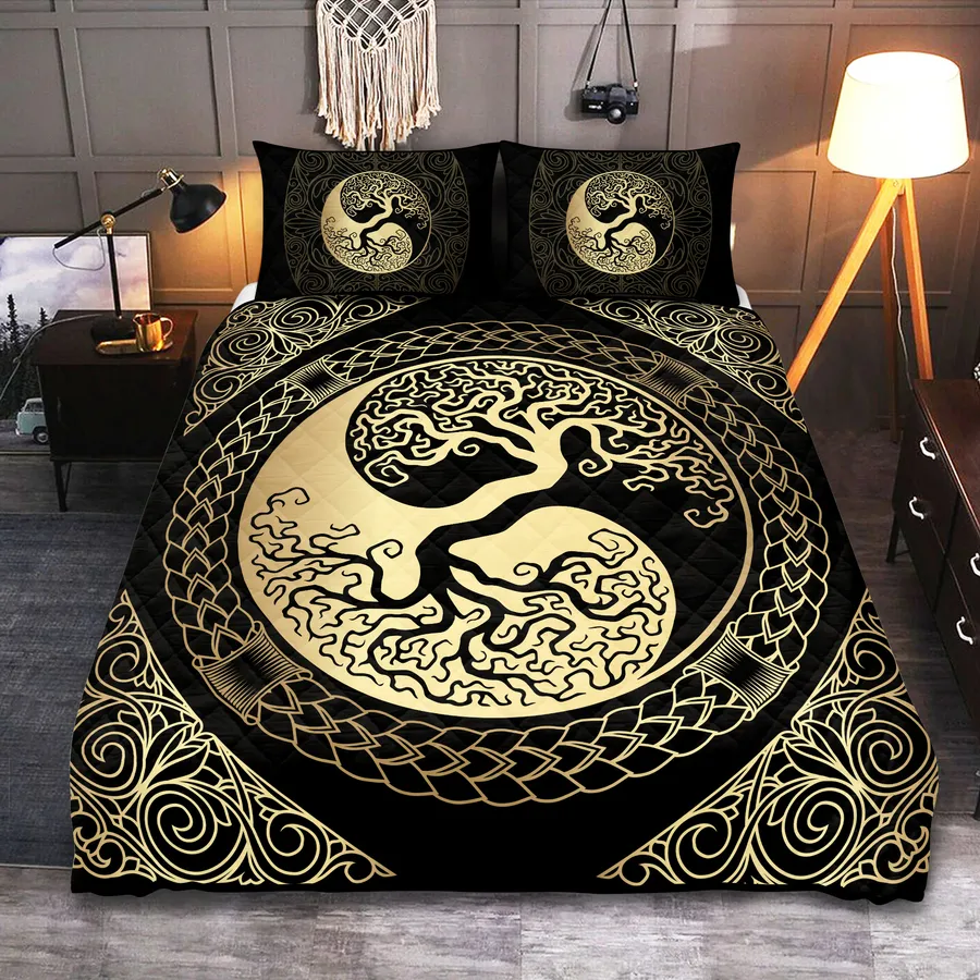 Find balance in legend with a Viking quilt bedding set featuring the Tree of Life Yin Yang—symbolizing unity, harmony, and the timeless cycle of Norse wisdom.