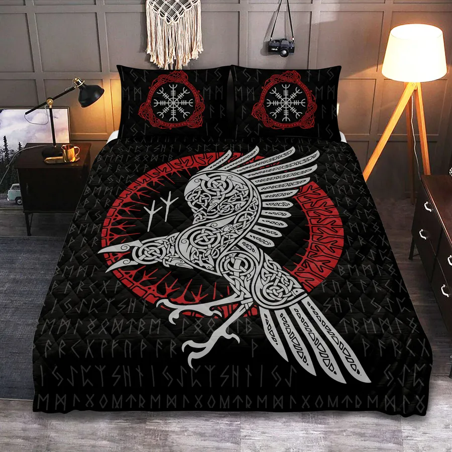 Embrace Norse legend each night with a Viking quilt bedding set featuring the powerful Viking raven, a symbol of prophecy, wisdom, and warrior spirit.