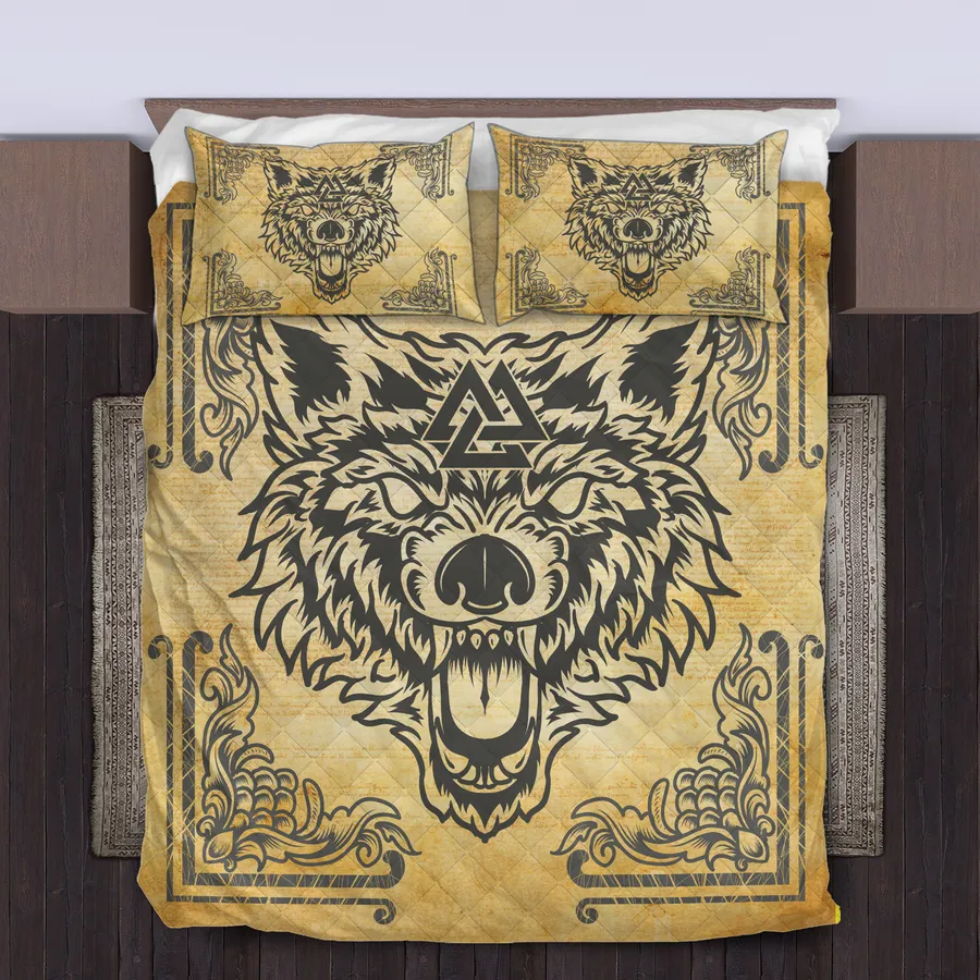 Embrace the wild spirit with a Viking quilt bedding set featuring Viking wolf art, channeling legendary strength, loyalty, and fearless Norse energy into every night.