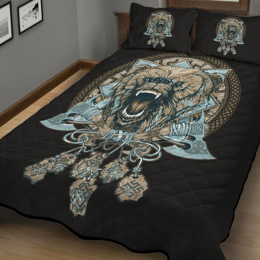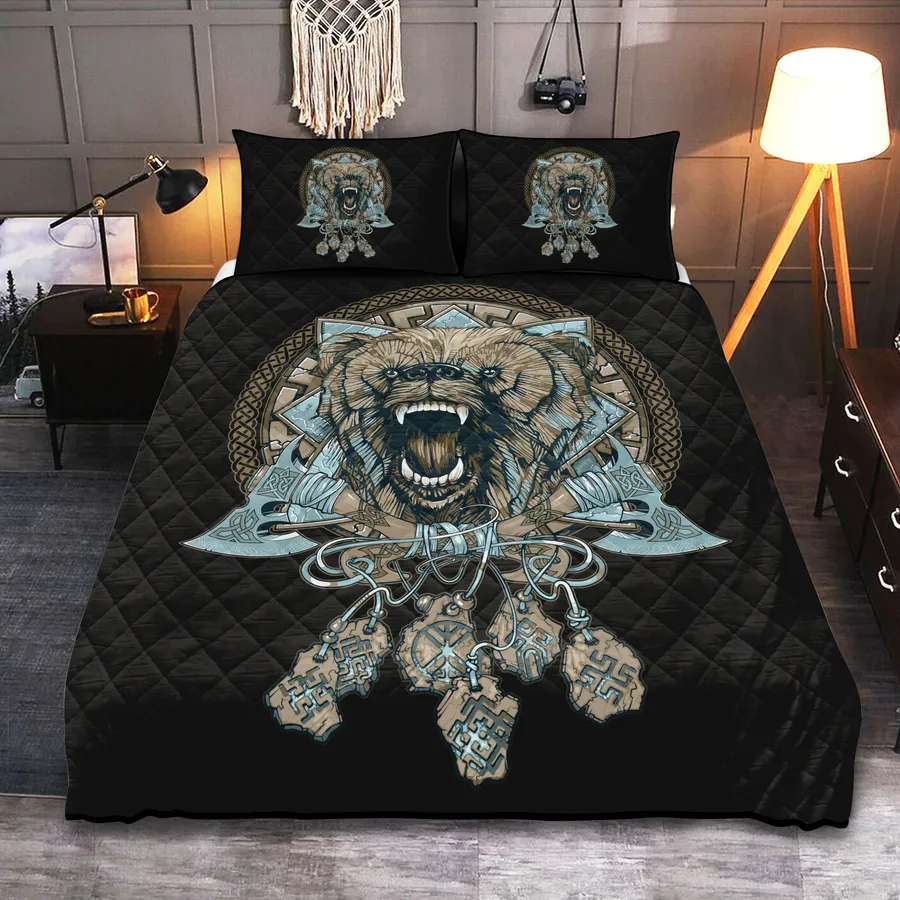 Ignite your nights with primal strength through a Viking quilt bedding set adorned in Wolf Viking art, celebrating the wild heart and fearless legacy of Norse warriors.