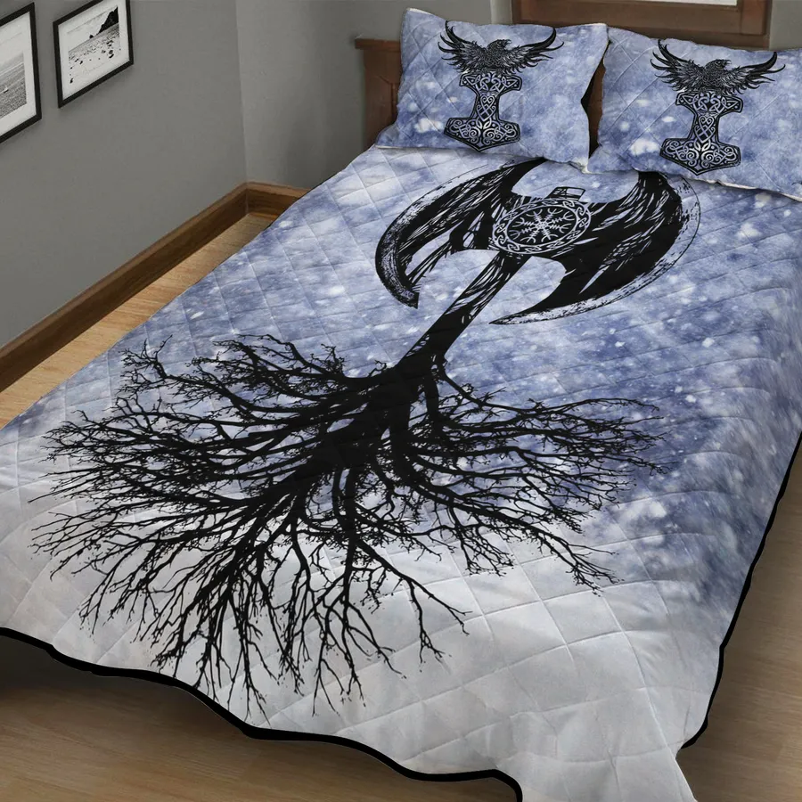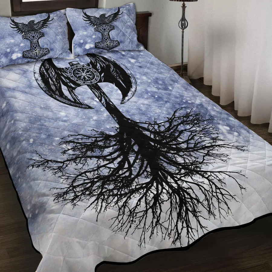 Sleep beneath legends with a Viking quilt bedding set featuring Yggdrasil art and a bold Norse axe, uniting ancient roots and warrior spirit in timeless style.