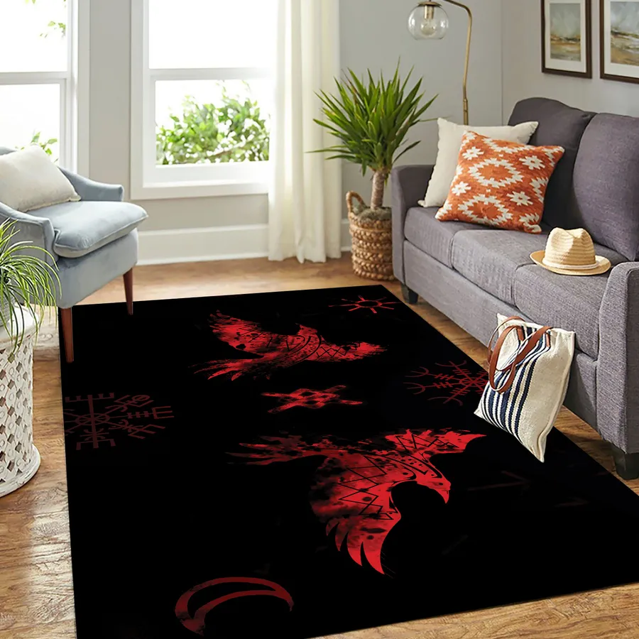 Transform your space with a Viking rug emblazoned with Norse raven symbolism and the timeless power of warrior Viking runes.