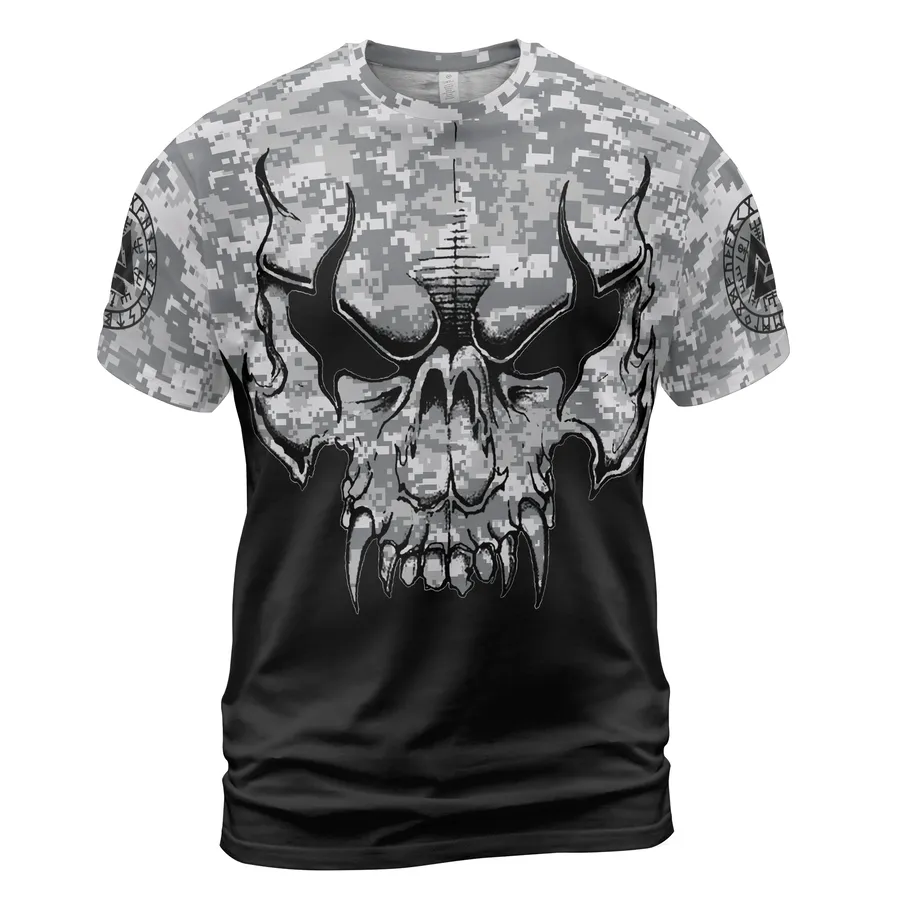Viking Tee Shirts – Viking Skull Art with Camouflage Pattern